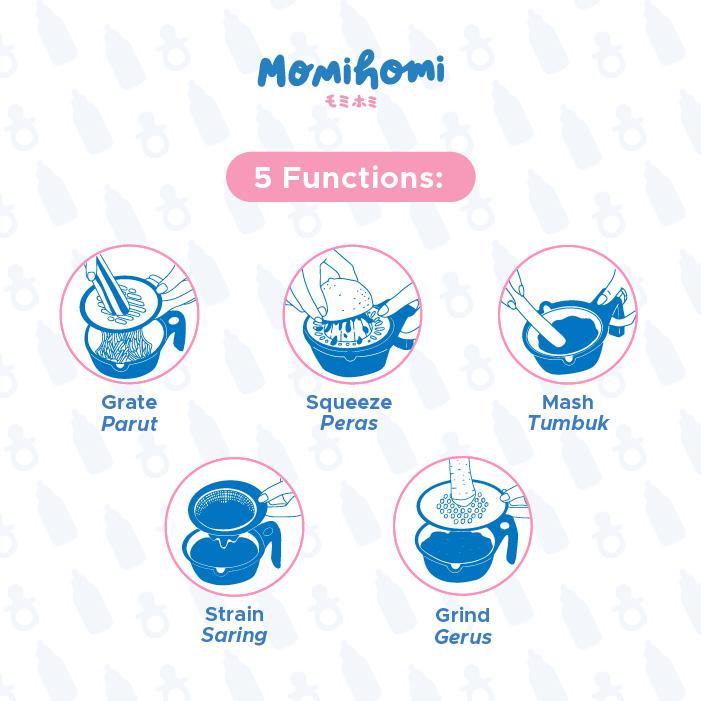 | Fungsi | Menghaluskan, menggiling, memeras buah, parut, tumbuk, dan saring makanan |