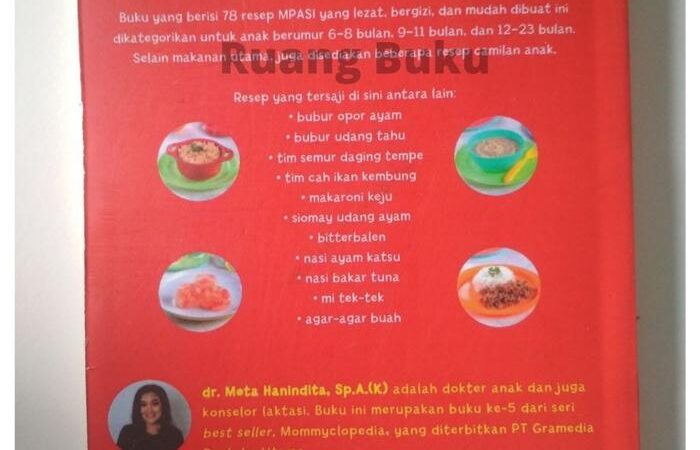 Bingung menyiapkan MPASI yang bergizi dan disukai si kecil? Mommyclopedia hadir sebagai solusi tepat! Buku ini berisi 78 resep MPASI praktis dan sehat yang disusun langsung oleh pakar tumbuh kembang anak, Dr. Meta Hanindita, Sp.A. Setiap resep dirancang untuk memenuhi kebutuhan nutrisi bayi sekaligus memperkenalkan berbagai rasa sejak dini.