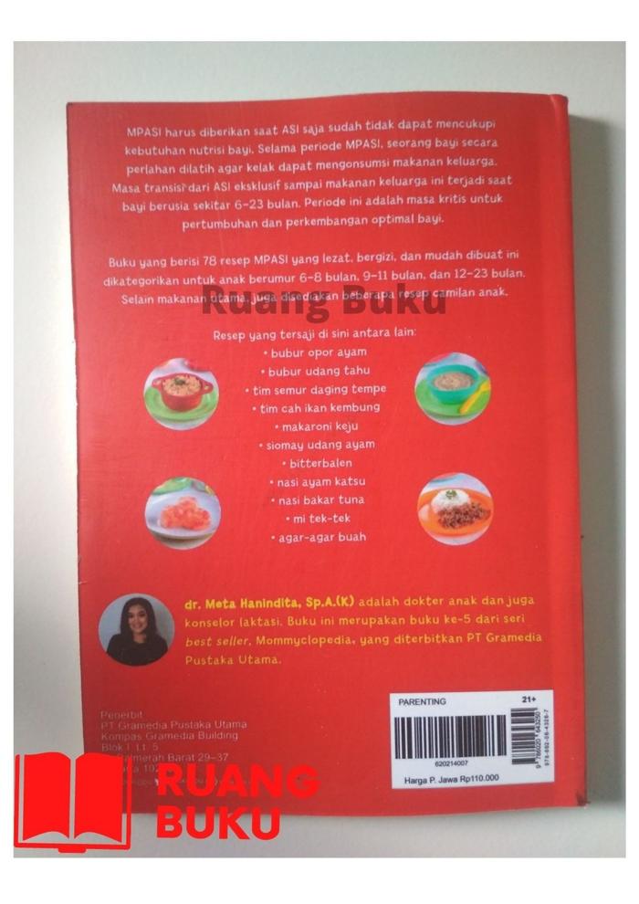 Bingung menyiapkan MPASI yang bergizi dan disukai si kecil? Mommyclopedia hadir sebagai solusi tepat! Buku ini berisi 78 resep MPASI praktis dan sehat yang disusun langsung oleh pakar tumbuh kembang anak, Dr. Meta Hanindita, Sp.A. Setiap resep dirancang untuk memenuhi kebutuhan nutrisi bayi sekaligus memperkenalkan berbagai rasa sejak dini.