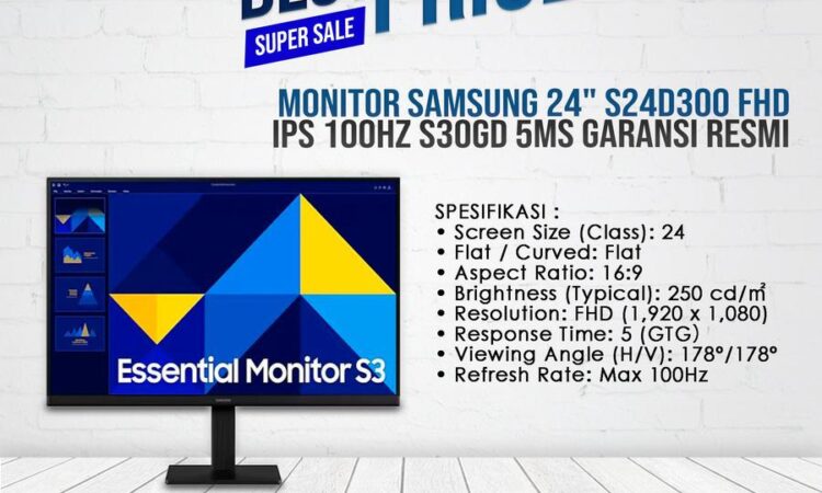 Monitor Samsung 24″ S24D300 FHD IPS 100Hz 5ms (Pengganti S24C330) Garansi Resmi