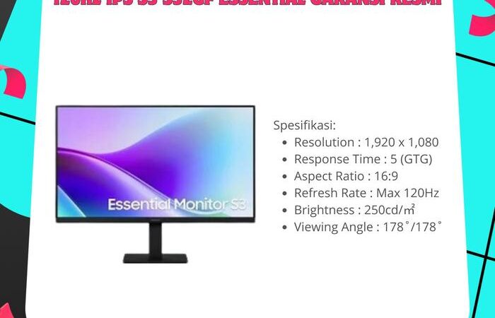Nikmati pengalaman visual yang lebih tajam dan responsif dengan Monitor Samsung S24F320! Layar IPS 24″ dengan resolusi FHD (1920 x 1080) dan refresh rate 120Hz memberikan kenyamanan bermain game, bekerja, atau menonton konten dengan warna yang hidup dan detail yang presisi.
