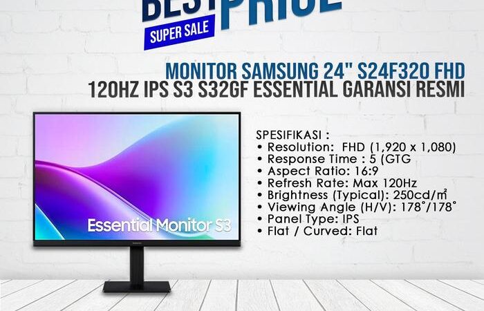 Monitor Samsung 24″ S24F320 FHD 120Hz IPS (Pengganti S24C310) – Garansi Resmi