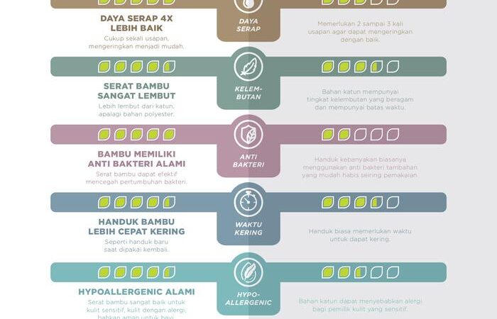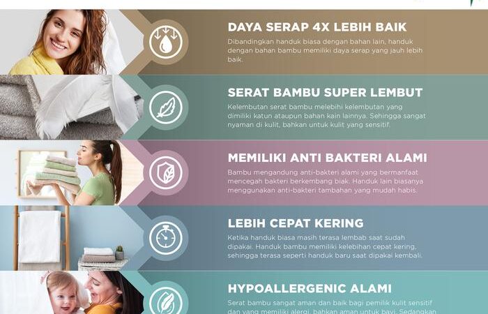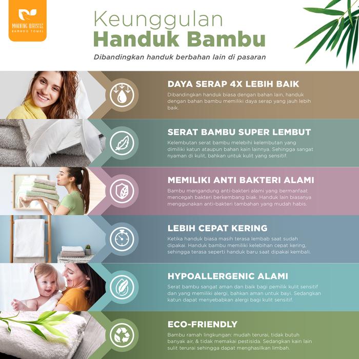 - Anti Bakteri Alami: Sifat yang dimiliki serat bambu secara alami untuk menghambat pertumbuhan bakteri, menjadikan handuk lebih higienis dan tidak mudah berbau.