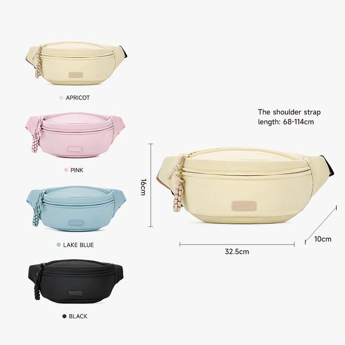 - Multi-Fungsi: Dapat digunakan sebagai tas pinggang (waist bag), tas dada (chest bag), atau tas slempang (crossbody bag) untuk menyesuaikan gaya dan kenyamanan Anda.