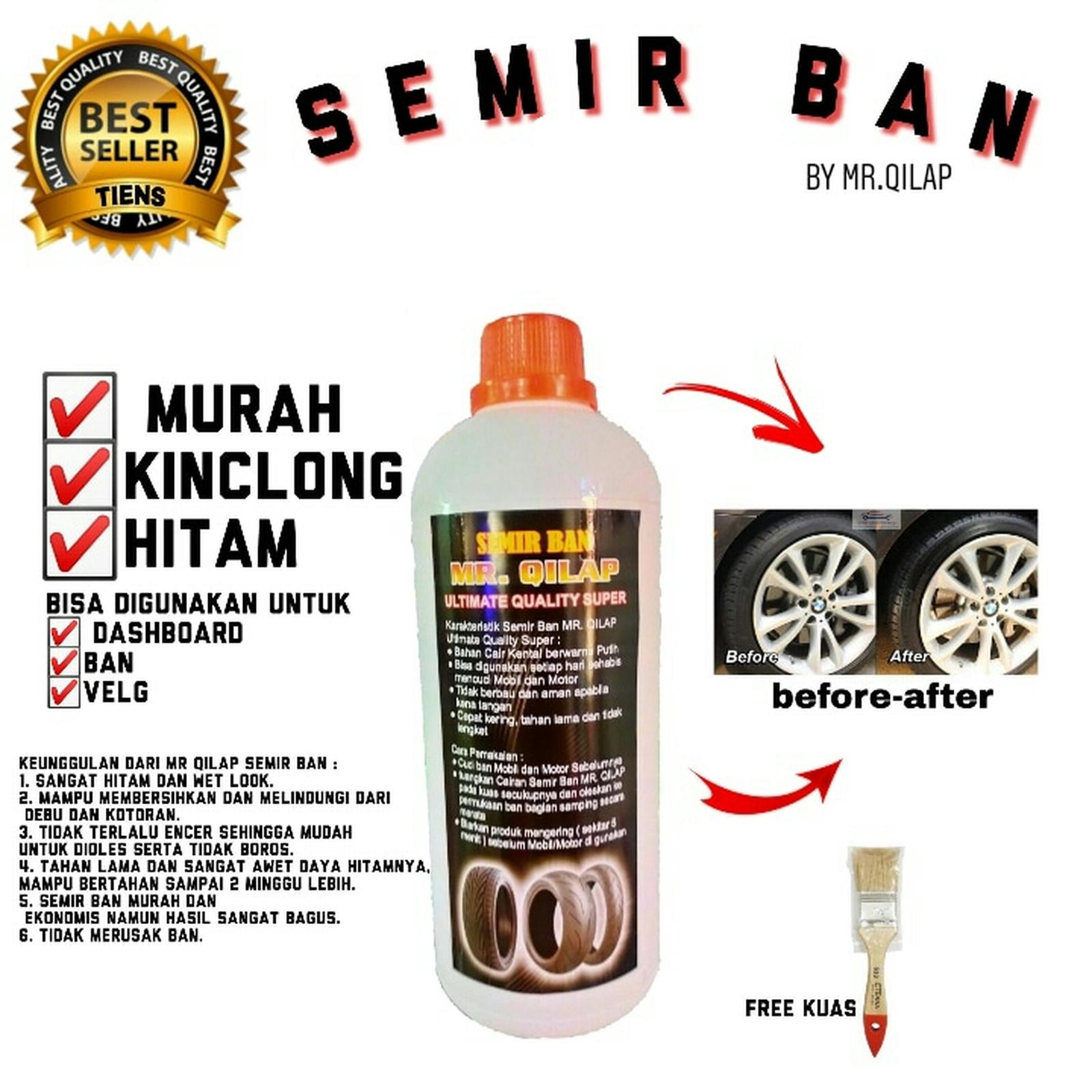 | Membersihkan sekaligus melindungi ban dari debu dan kotoran jalanan | Aplikasikan merata pada permukaan ban menggunakan kuas atau aplikator |