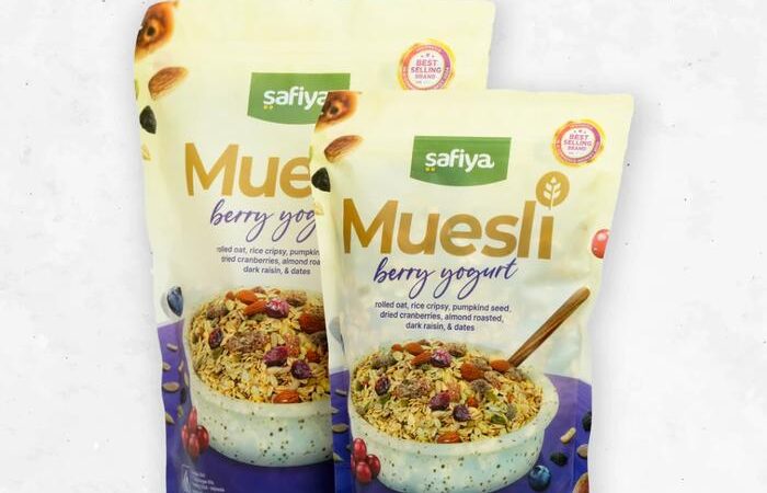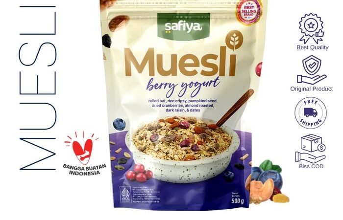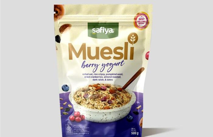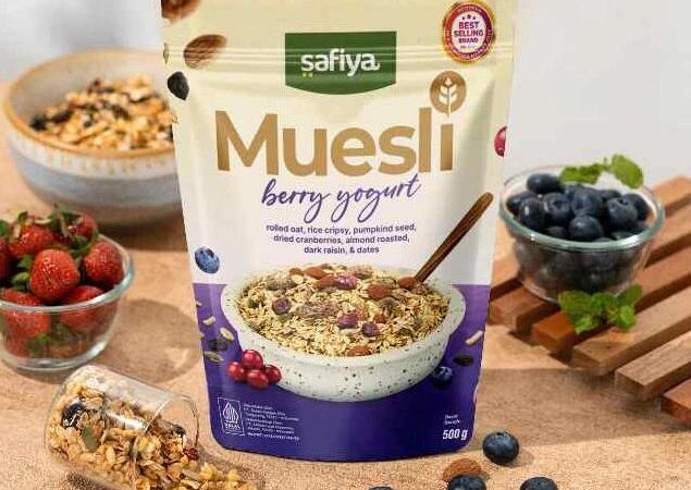 Awali hari Anda dengan semangkuk Muesli Berry Yogurt Safiya yang lezat dan menyehatkan. Terbuat dari perpaduan premium rolled oats, kacang almond, biji-bijian, serta buah-buahan kering seperti kismis dan cranberry. Diberi sentuhan istimewa perisa blueberry dan yogurt yang menyegarkan, menghasilkan cita rasa yang sempurna antara creamy, crunchy, dan fruity. Muesli ini praktis dikonsumsi langsung sebagai camilan atau diolah menjadi hidangan sarapan yang mengenyangkan.