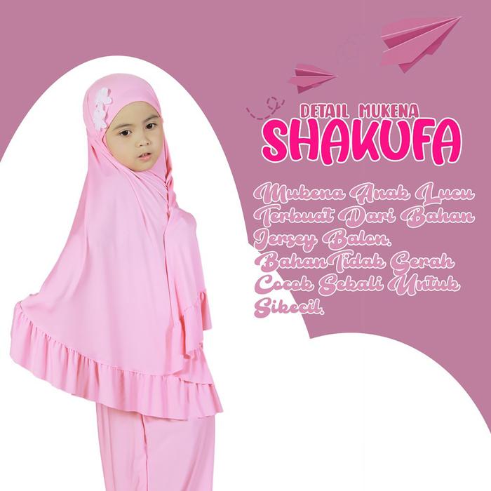 Mukena Shakufa didesain khusus untuk menemani ibadah si kecil dengan nyaman. Terbuat dari bahan jersey balon pilihan yang terkenal ringan, adem, dan sangat cocok untuk iklim tropis Indonesia. Teksturnya lembut dan lentur (elastis), memberikan kebebasan bergerak tanpa mudah melar. Kualitas jahitannya kuat dan bahan yang digunakan tidak mudah kusut, menjadikannya pilihan praktis bagi orang tua.