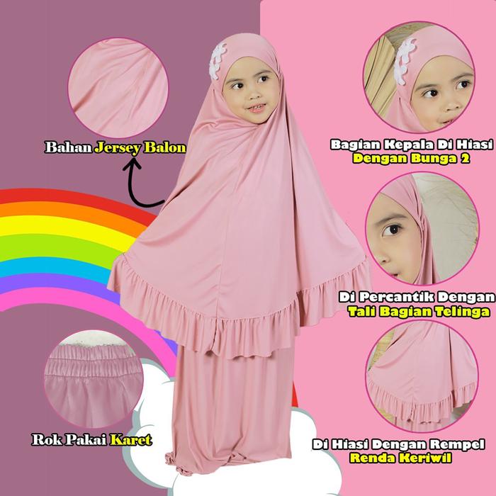 | Usia Anak | Bagian Mukena | Panjang | Lebar Pinggang |