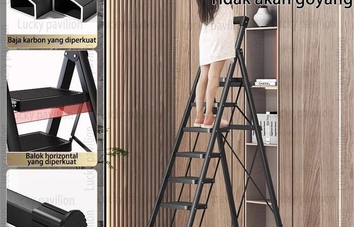 - Sistem Kunci Ganda: Mekanisme pengaman yang terdiri dari dua buah kunci atau pengait untuk memastikan tangga tidak bergerak atau terlipat saat sedang dipijak, memberikan perlindungan ganda bagi pengguna.