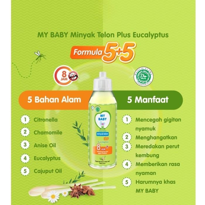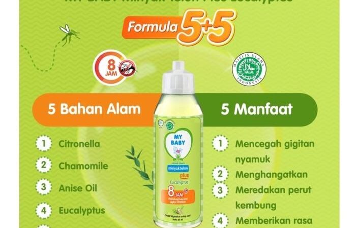 Tumbuh kembang si kecil jadi lebih optimal dengan perlindungan lengkap dari My Baby Minyak Telon Plus. Formulanya yang diperkaya dengan Citronella dan Chamomile 100% alami memberikan manfaat ganda untuk buah hati Anda.