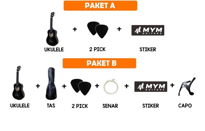 | Paket A | 1 Unit Ukulele + 2 Pick + Stiker |