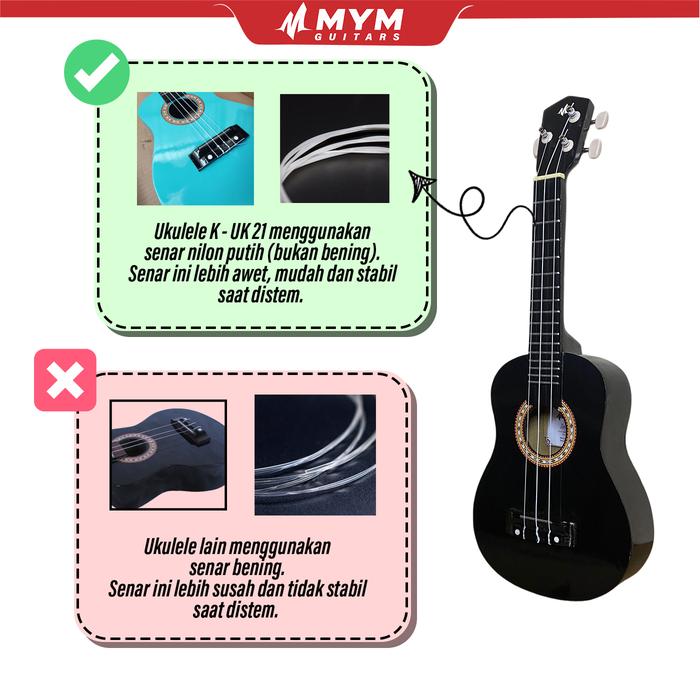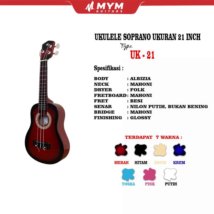 Hadirnya Mym Ukulele Soprano Seri UK-21 menjawab kebutuhan para musisi pemula dan penghobi yang menginginkan instrumen berkualitas dengan harga terjangkau. Dibekali 4 senar nilon putih, ukulele ini menghasilkan suara yang jernih, hangat, dan minim fals.