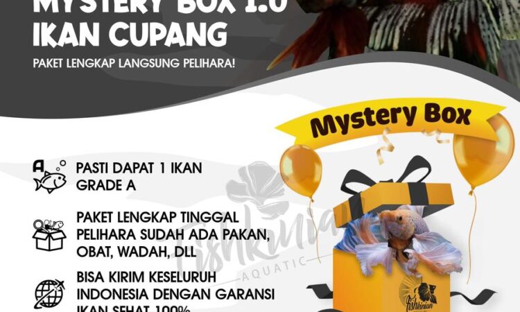 Nikmati pengalaman unboxing seru dengan Mystery Box Ikan Cupang Fishkinian! Setiap box berisi ikan cupang premium bernilai Rp100.000–Rp500.000 dan perlengkapan lengkap untuk perawatan ikan.