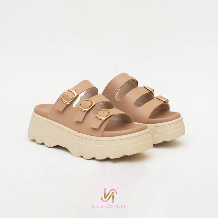 Dibekali sol platform setinggi 6 cm yang tebal dan kokoh, sandal ini tidak hanya memberikan tambahan tinggi secara instan tetapi juga menyebarkan tekanan secara merata pada telapak kaki. Hal ini membuat Anda bisa berjalan dengan nyaman sepanjang hari tanpa rasa pegal. Bagian insole menggunakan busa NS Pillow Foam yang empuk dan adaptif, memberikan sensasi seperti berjalan di atas bantal.
