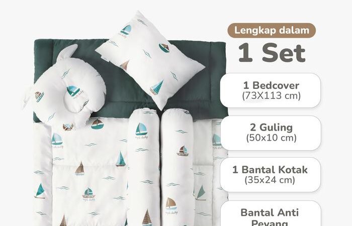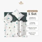 | Komponen Set | 1 Bedcover, 1 Bantal Kotak, 1 Bantal Anti Peyang, 2 Guling |
