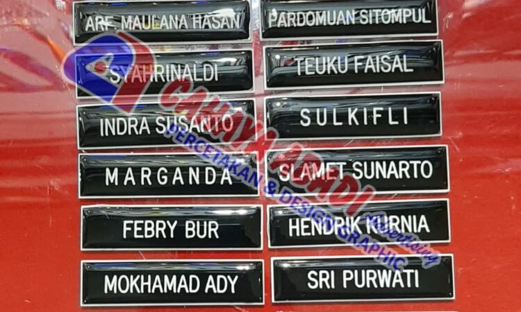 Tampilkan identitas profesional Anda dengan name tag grafir berkualitas tinggi. Dibuat khusus untuk seragam PDH PNS, papan nama ini dirancang untuk keawetan dan tampilan yang elegan.