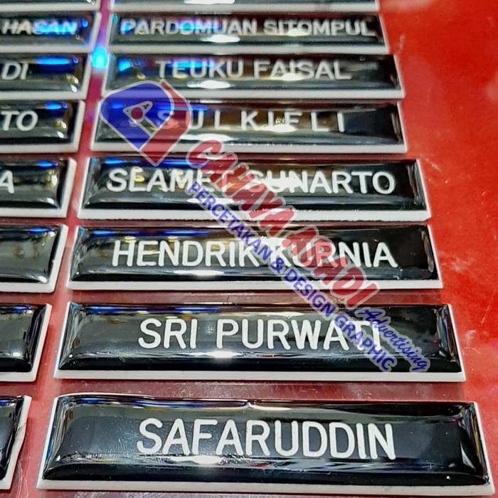 Tampilkan identitas profesional Anda dengan name tag grafir berkualitas tinggi. Dibuat khusus untuk seragam PDH PNS, papan nama ini dirancang untuk keawetan dan tampilan yang elegan.