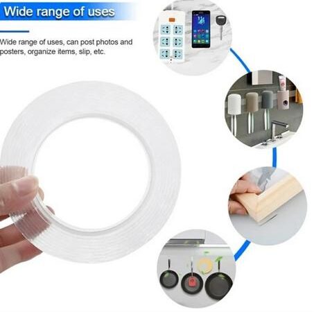Temukan revolusi dalam merekatkan berbagai benda dengan Nano Double Tape ini. Dengan lebar 3 cm dan pilihan ketebalan 1 mm atau 2 mm, tape ini menawarkan daya rekat luar biasa hingga 5 kg untuk versi 2mm. Sangat serbaguna dan dapat digunakan untuk pemasangan nomor rumah, dekorasi dinding, tanda outdoor, hingga item dekoratif pada permukaan bertekstur.
