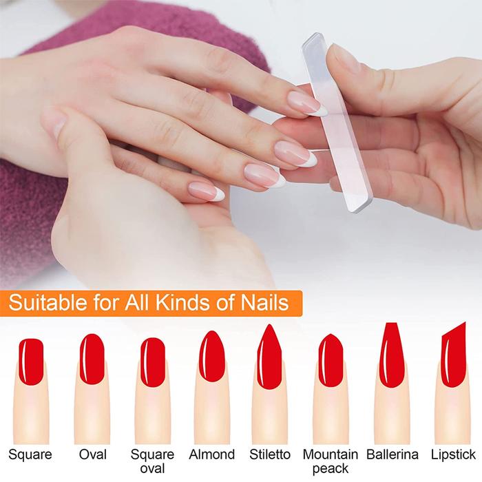 - Nano Glass: Merujuk pada bahan kaca dengan teknologi nano yang menghasilkan permukaan pengikir yang sangat halus dan presisi, sehingga efektif merapikan kuku tanpa membuatnya mudah patah atau rusak.