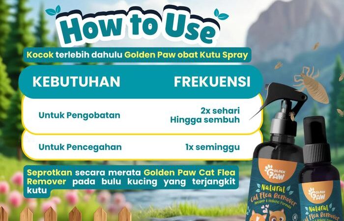 - Semprotkan merata pada bulu kucing, hindari area mata dan hidung.