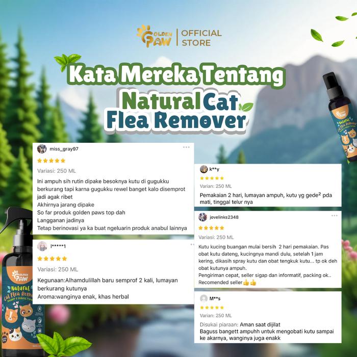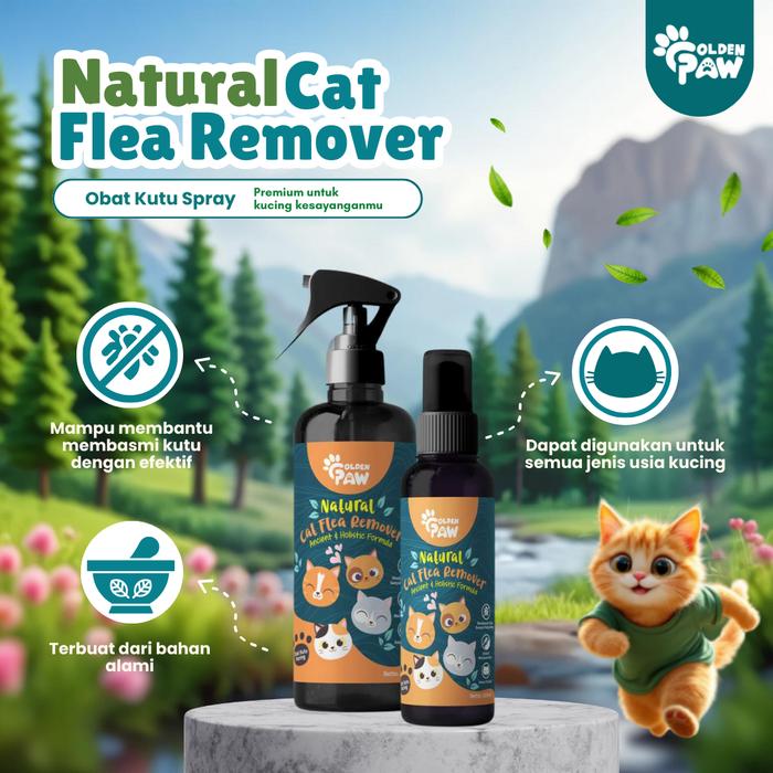 Natural Cat Flea Remover adalah obat kutu semprot premium berbahan alami, diformulasikan khusus untuk kucing. Mengandung 3 bahan aktif utama:
