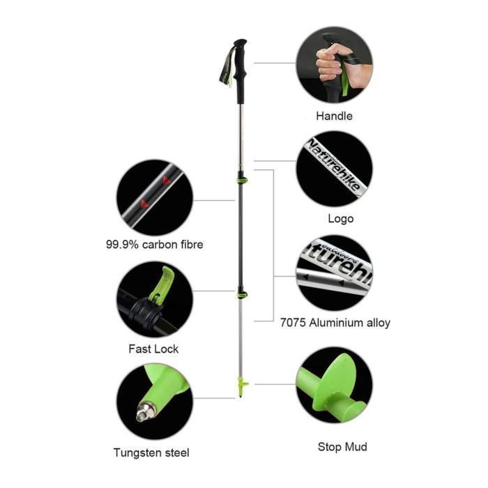 Trekking Pole Naturehike ini menggabungkan material carbon dan aluminium alloy 7075, menjadikannya lebih ringan dari trekking pole full alloy. Dilengkapi dengan fast outer lock yang memudahkan pengaturan panjang tongkat secara cepat dan presisi.