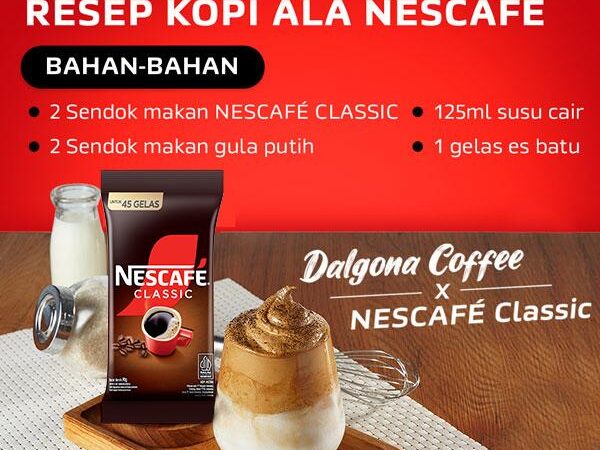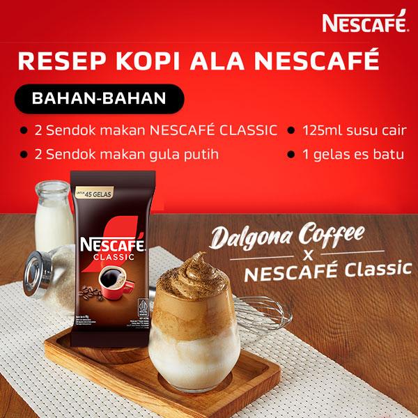 | Langkah | 1. Larutkan 1 sendok teh (2g) NESCAFÉ CLASSIC dengan 150ml air panas (85°C). 2. Tambahkan gula dan krimer atau susu sesuai selera. | 1. Larutkan 1 sendok teh (2g) NESCAFÉ CLASSIC dengan 80ml air suhu ruang. 2. Tambahkan 7 es batu. |