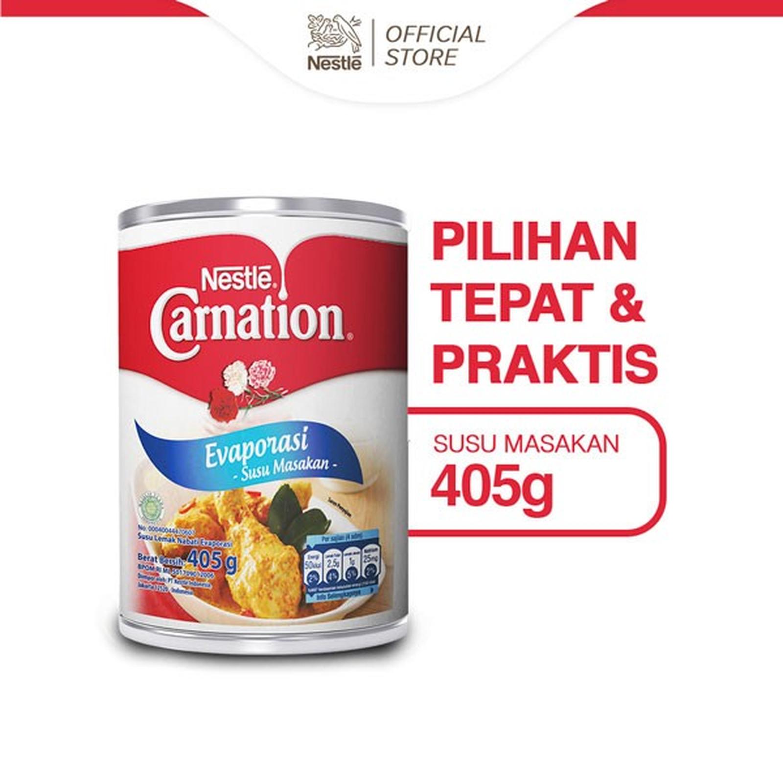 Wujudkan kreasi masakan terbaik Anda dengan Nestlé Carnation Susu Masakan Evaporasi. Terbuat dari padatan susu, produk ini setara dengan susu sapi segar namun lebih praktis dan hemat. Proses evaporasi menghilangkan sekitar 60% air, menghasilkan konsentrat susu dengan protein lebih tinggi dan lemak lebih rendah, sempurna untuk membuat saus, krim sup, pudding, serta aneka kue dan hidangan penutup yang lebih kaya dan creamy.