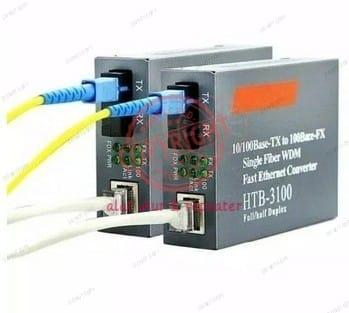 - Media Converter: Perangkat yang mengubah satu jenis koneksi atau sinyal data ke bentuk lainnya, dalam hal ini dari sinyal listrik pada kabel tembaga (RJ45) menjadi sinyal cahaya pada fiber optik.