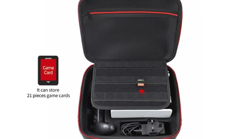 | Kapasitas Besar | – Memuat seluruh sistem Nintendo Switch (konsol, dock, adaptor, grip Joy-Con, ekstra Joy-Con, strap Joy-Con, kabel HDMI). – Kantung mesh dengan resleting untuk kabel HDMI dan aksesori tambahan. – 21 slot kartrid game. |