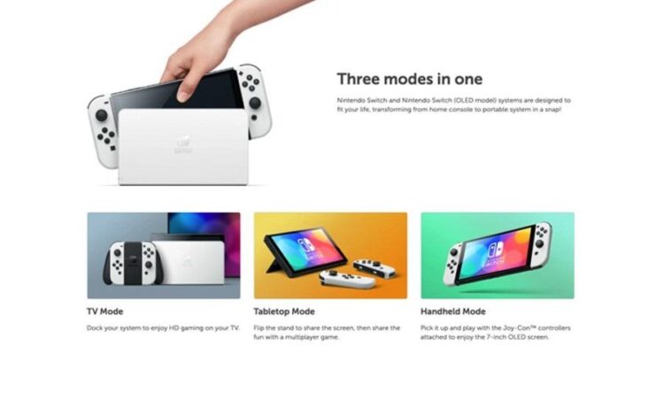 | Warna Console | Layar OLED hitam, Joy-Con putih, dock putih |