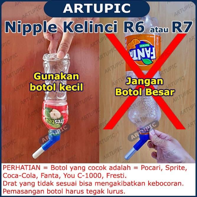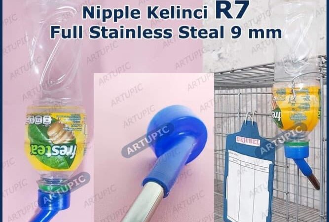 Nipple Kelinci R7 merupakan tutup botol inovatif yang dirancang khusus untuk memudahkan hewan peliharaan Anda minum. Terbuat dari material pipa stainless steel berukuran 9 mm dan dilengkapi dengan 2 gotri keramik putih, nipple ini menjamin aliran air yang terkontrol, tidak mudah bocor, dan sangat awet.