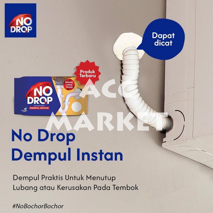 No Drop Dempul Tembok Dinding Instan adalah solusi praktis untuk menambal berbagai jenis kerusakan pada dinding, seperti lubang pipa AC, wastafel, retakan kecil, atau celah yang memungkinkan hewan seperti tikus dan serangga masuk. Produk ini memiliki tekstur elastis, tahan air, dan mudah diaplikasikan tanpa perlu teknik khusus. Dengan berat 20 gram per kemasan, No Drop Dempul Instan siap digunakan untuk perbaikan cepat dan hasil yang tahan lama.