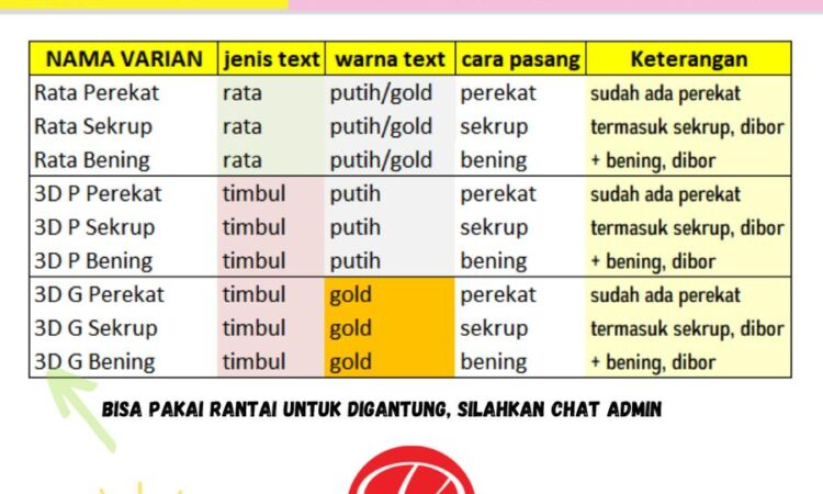 A: Bisa! Silakan chat kami. - Q: Tulisan timbul?