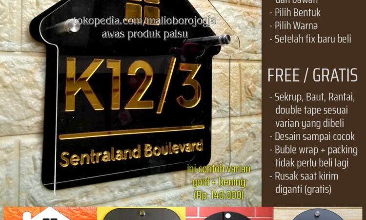 - Fiser/Sekrup/Baut Stainless: Komponen pengencang berbahan stainless steel anti karat untuk pemasangan nomor rumah.