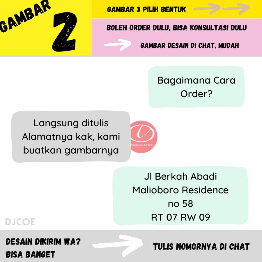 | Desain | Gambar desain dikirim via chat sebelum order |