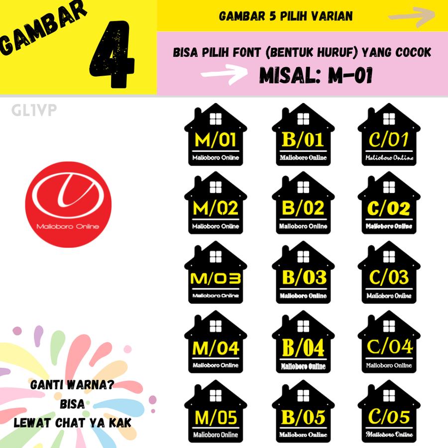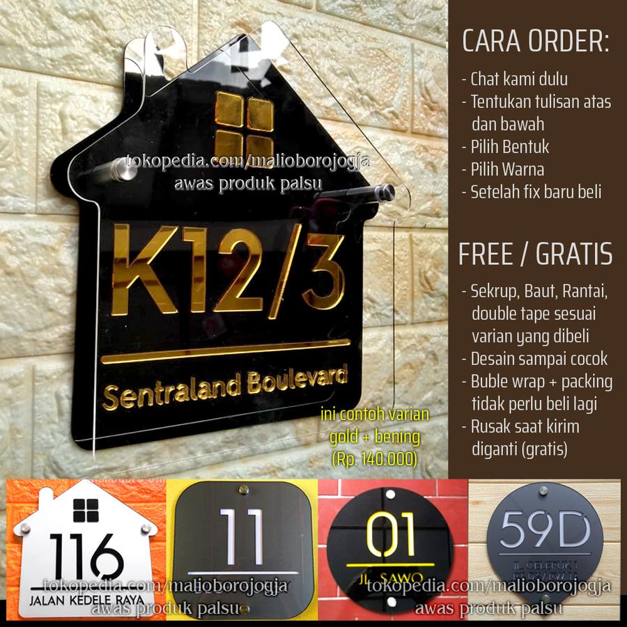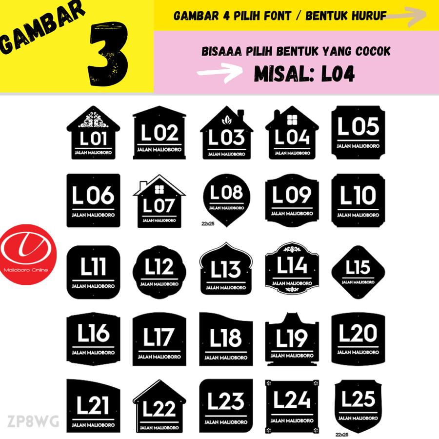 - Fiser/Sekrup/Baut Stainless: Komponen pengencang berbahan stainless steel anti karat untuk pemasangan nomor rumah.