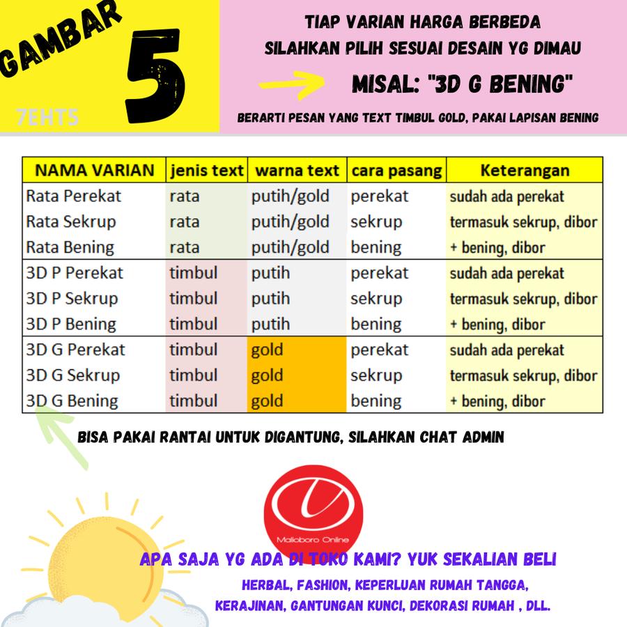 A: Bisa! Silakan chat kami. - Q: Tulisan timbul?