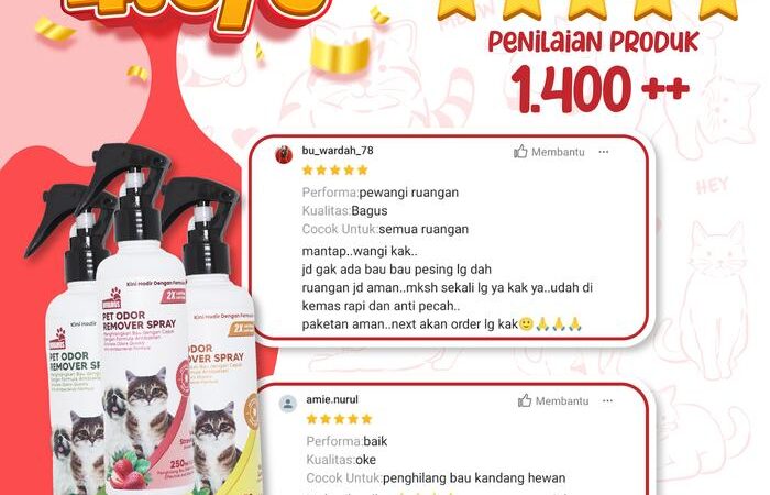| Ampuh Hilangkan Bau Seketika: Menetralisir bau pesing hingga ke sumbernya. | 1. Singkirkan tempat makan dan minum hewan dari area yang akan dibersihkan. |