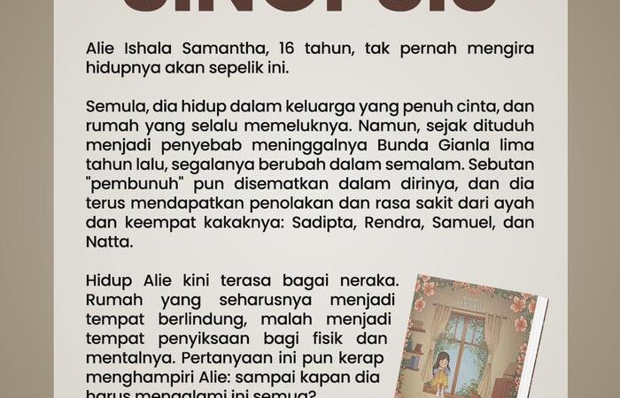 Ikuti perjalanan emosional Alie Ishala Samantha, si bungsu yang memikul lukanya sendiri. Perjuangannya untuk mendapatkan penerimaan dari sang ayah dan keempat saudaranya, setelah dituding sebagai sumber kehilangan kebahagiaan keluarga, akan membawa Anda dalam pusaran rasa haru dan geram. Cacian, makian, dan kebencian telah menjadi makanannya sehari-hari, tetapi tidak ada yang menyadari bahwa Alie sudah lelah untuk terus bertahan sendirian.