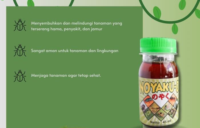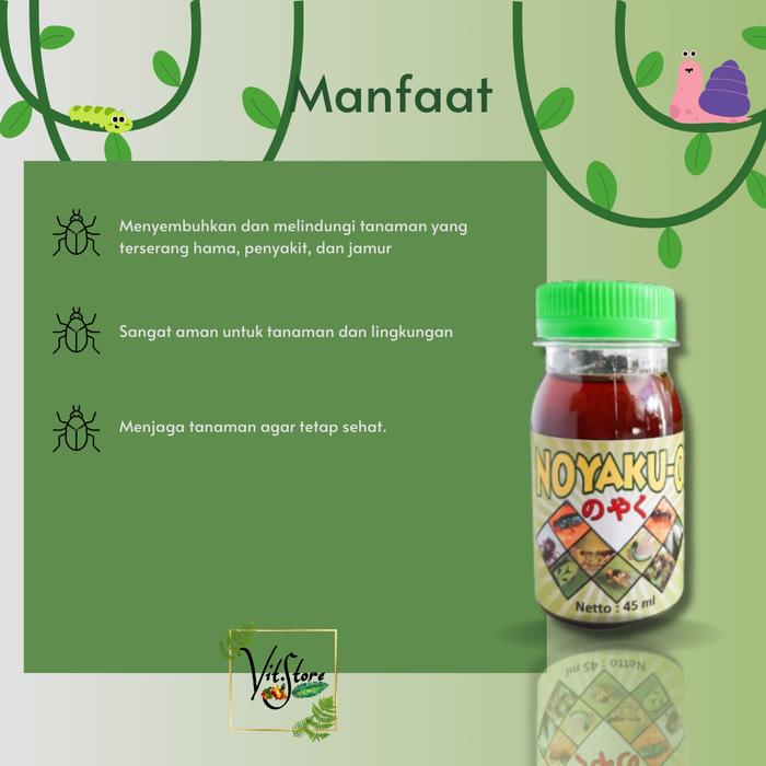 | Mengendalikan serangan hama seperti kutu daun, ulat, dan tungau. | Larutkan 2 tutup botol (20ml) NOYAKU-O ke dalam 1 liter air bersih. | Terbuat dari 100% bahan alami pilihan. |