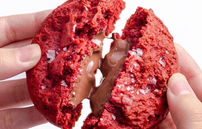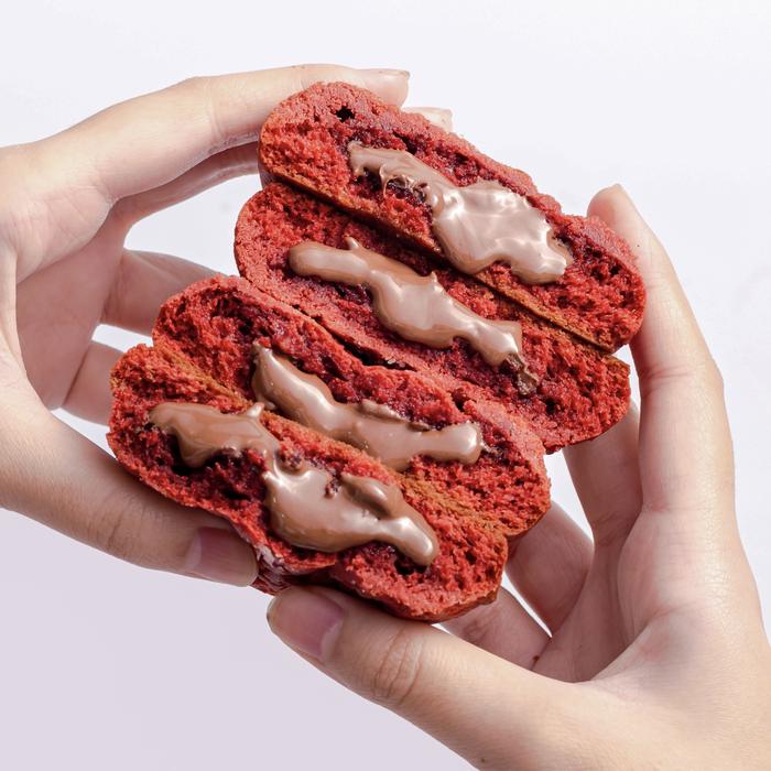 Nikmati kelezatan Nutella Red Velvet Molten Cookies yang dibuat dengan bahan premium dan dipanggang fresh setiap kali dipesan! Cookie lembut dengan sentuhan khas red velvet ini memiliki isian Nutella meleleh yang lumer sempurna, dipadukan dengan sedikit rasa asin dari garam laut untuk keseimbangan cita rasa yang memikat.