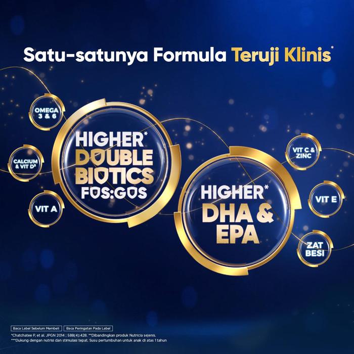 - ActiDuobio+: Kombinasi unik prebiotik FOS:GOS dengan rasio 1:9 dan Omega (DHA & EPA) yang telah teruji klinis secara ilmiah.