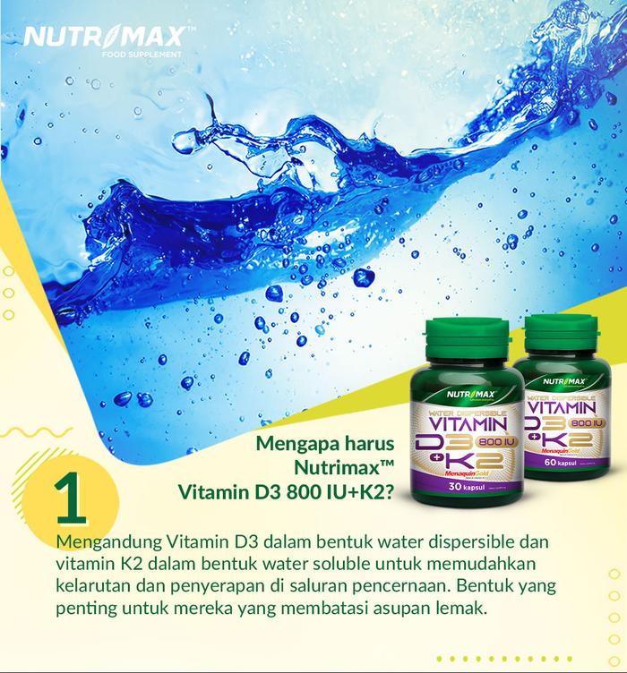 | Meningkatkan penyerapan kalsium secara optimal | Water Dispersible Vitamin D3 (Cholecalciferol) 1000 IU | 1 kapsul, sekali sehari |