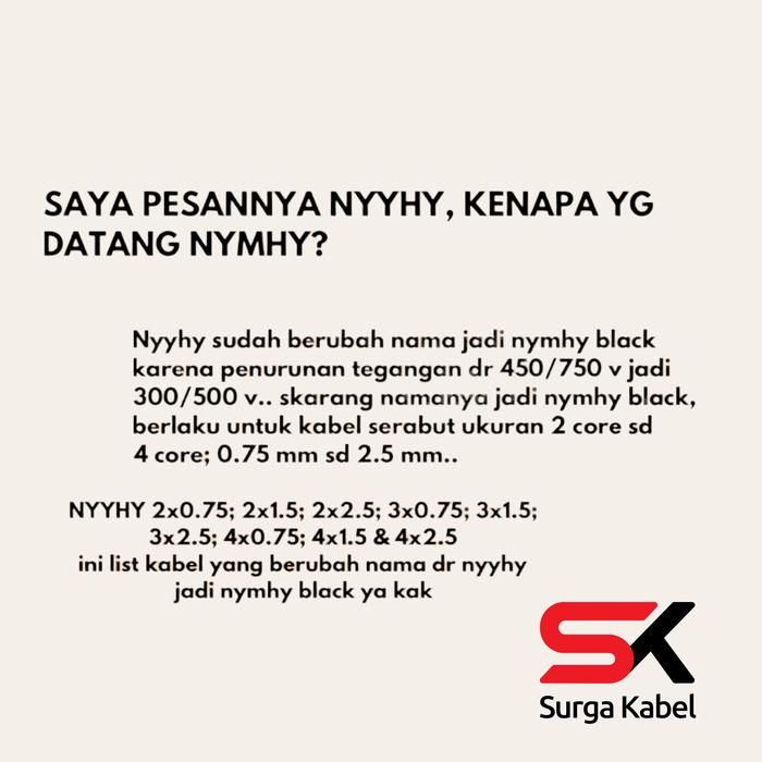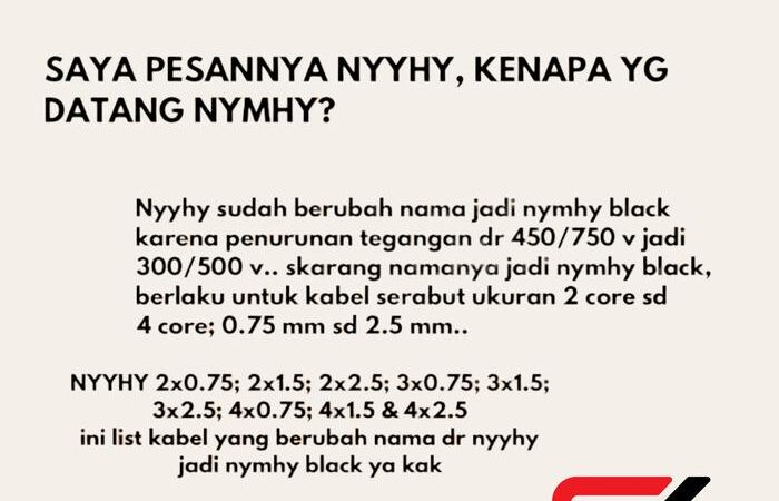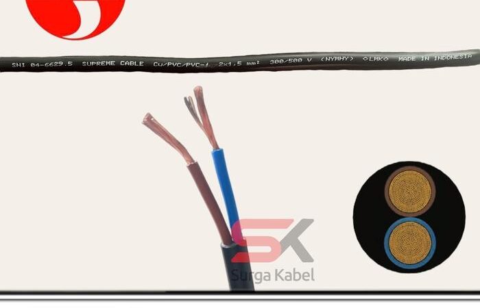- NYMHY: Kabel fleksibel berinsulasi PVC dengan konduktor serabut (stranded), tahan tekanan mekanis sedang.