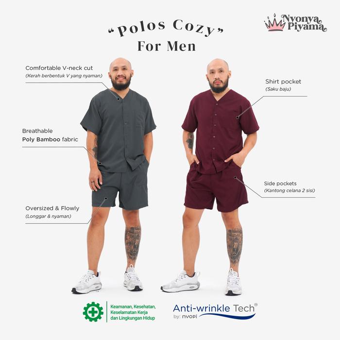 Rasakan kenyamanan sempurna di setiap momen santai Anda dengan Cozy Set dari Nyonya Piyama. Koleksi ini didesain khusus untuk pria modern yang menghargai kenyamanan tanpa mengesampingkan gaya. Terbuat dari material Poly Bamboo inovatif yang terkenal sangat lembut, halus, dan memiliki sirkulasi udara yang luar biasa, menjadikannya pilihan ideal untuk beristirahat di rumah atau menjalani aktivitas ringan sehari-hari.
