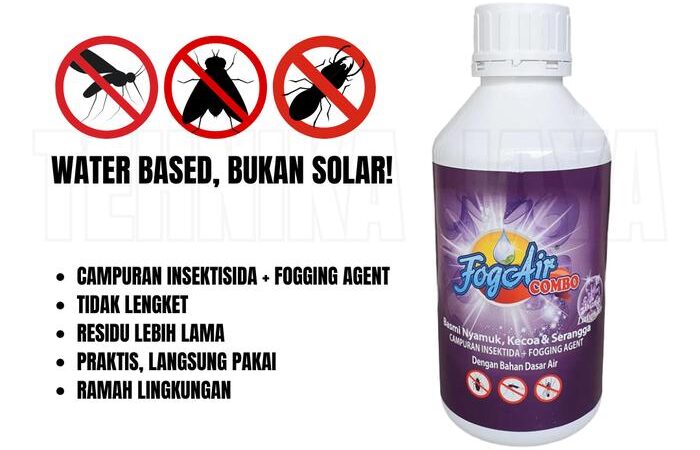 Solusi praktis dan efektif untuk membasmi nyamuk, kecoa, dan berbagai serangga pengganggu lainnya. Fogair Combo adalah formula fogging siap pakai yang tidak memerlukan tambahan solar atau bahan pencampur lainnya, sehingga sangat mudah digunakan. Cocok untuk pencegahan penyakit Demam Berdarah Dengue (DBD) di lingkungan rumah, perkantoran, sekolah, maupun area komersial.