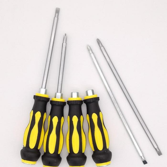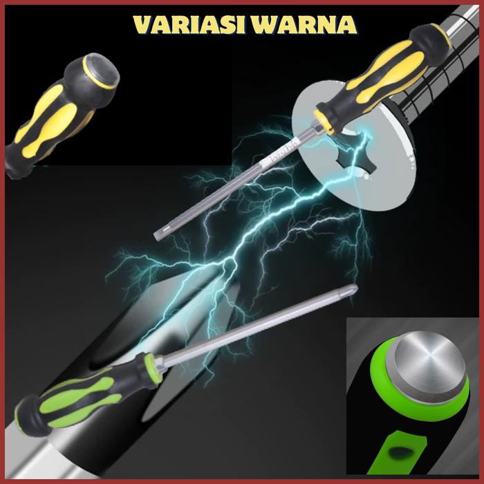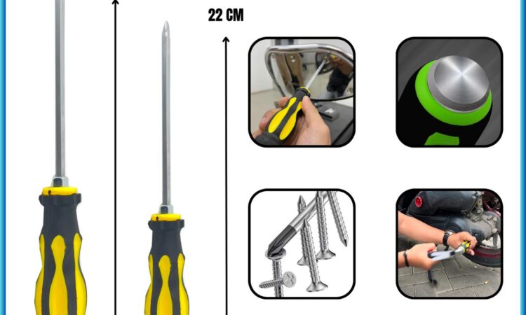 Dengan panjang 21,5 cm, obeng ini memberikan leverage yang optimal. Gagangnya dilapisi karet yang empuk, memberikan kenyamanan genggaman maksimal dan daya cengkeram yang kuat sehingga anti slip selama penggunaan. Tersedia dalam kombinasi warna kuning dan hitam yang mudah dikenali.