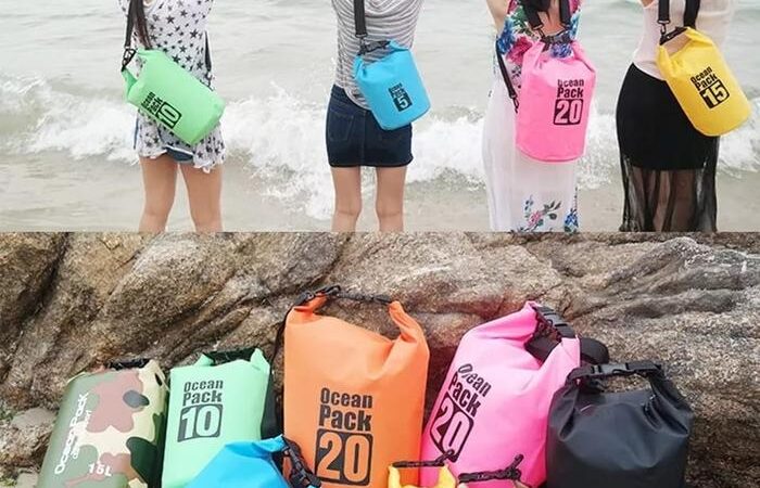 • Dry Bag: Tas kering yang dirancang khusus untuk menyimpan barang dan melindunginya dari air, kelembapan, serta elemen basah lainnya. Tas ini biasanya memiliki penutup kedap air yang dapat digulung dan dikunci.