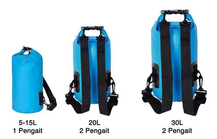 - Dry Bag: Tas kedap air yang dirancang khusus untuk melindungi barang dari air dan kelembapan, biasanya digunakan dalam kegiatan outdoor.